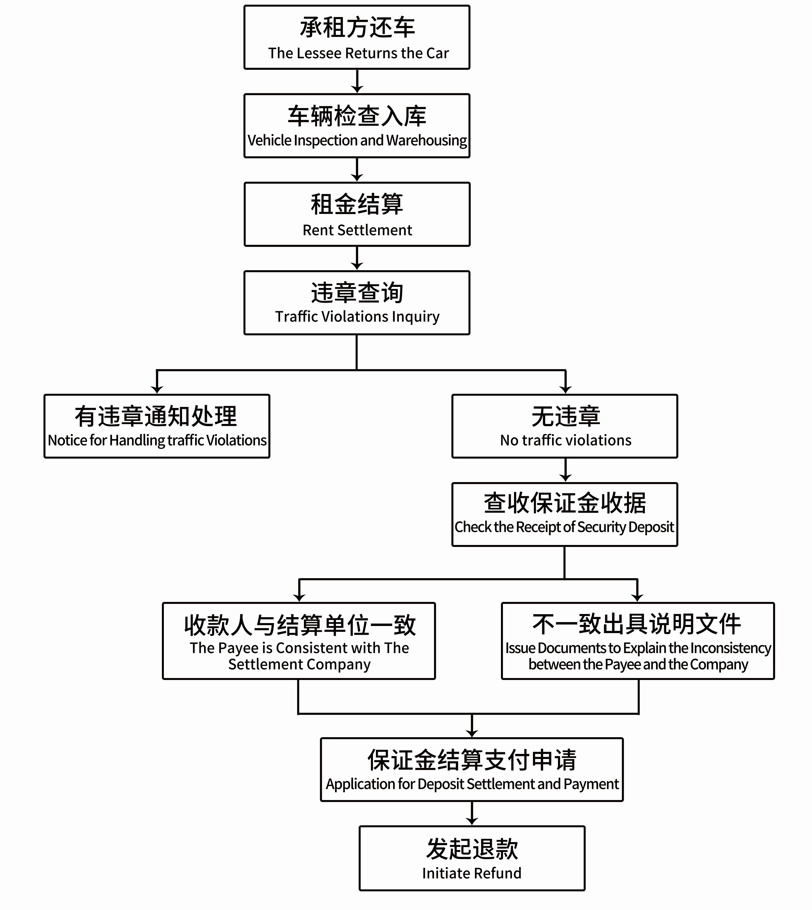 Deposit collection: If you choose the margin guarantee method when renting vehicles​,the lessee shall pay a deposit to the lessor when signing the car renta l contract. The lessor shall issue corresponding documents to the lesseeβ when collecting the deposit, and should not misappropriate the deposit ₹for other purposes.